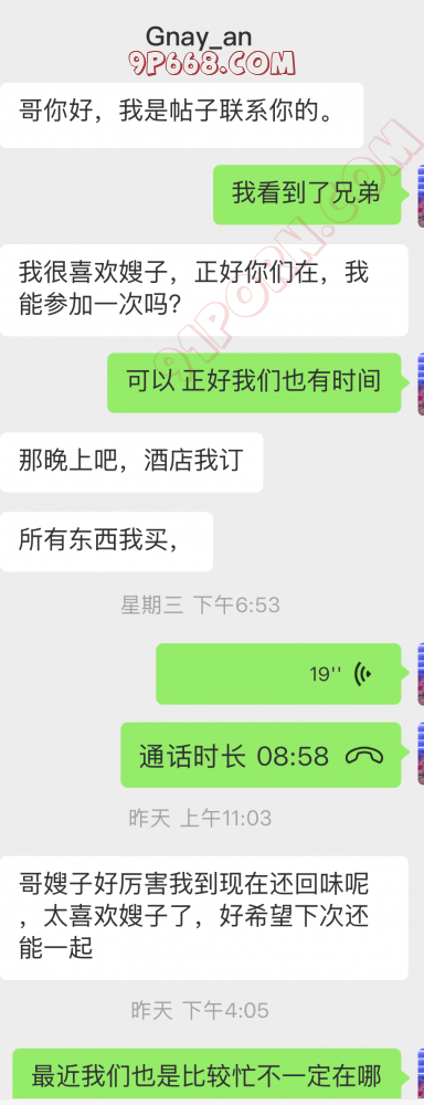 露出的帖子发出去以后很多网友加我们,问我们位置最后简单的了解一个挺合适就简单的活动了一下,具体的沟通是在飞机上V上只是简单的聊了一下具体聊天信息懒得去剪切了,开始他还挺尴尬的,因为这次还有一个单女在场,但是因为来大姨妈了就没参加只在旁边观摩了。单男还算很优秀的给娇妻都操喷水了。