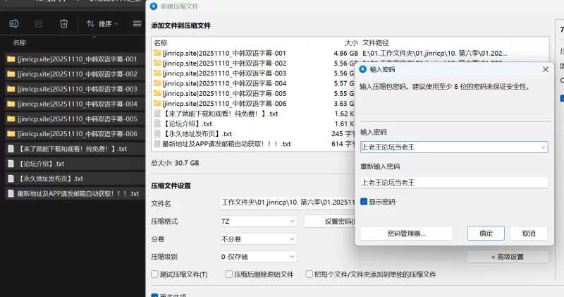 2.每个视频压缩包均由7z.001和7z.002两个压缩包组成,全部下载后放在一起,不要重命名,直接点击001的文件,输入密码,即可解压!