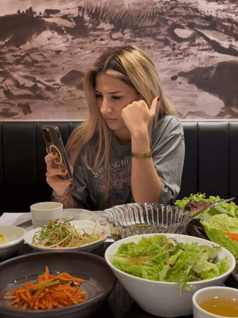 街角吃了个冰淇淋便找到一家烤肉店乘车前往。