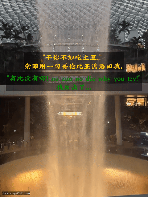 进入到正好距离哥伦比亚最远端的国家新加坡,