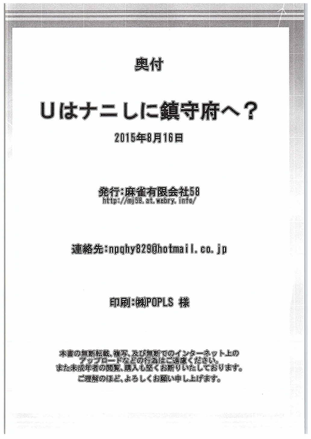 [日本](C88) [麻雀有限会社58 (旅烏)] Uはナニしに鎮守府へ? (艦隊これくしょん -艦これ-)