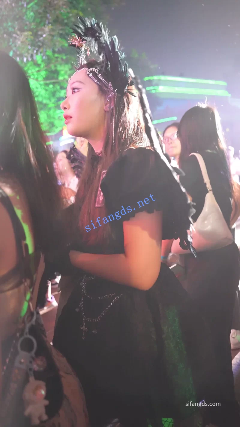 天使裙小姐姐黑色网袜逛街,直接开闪光灯CD无痕内。