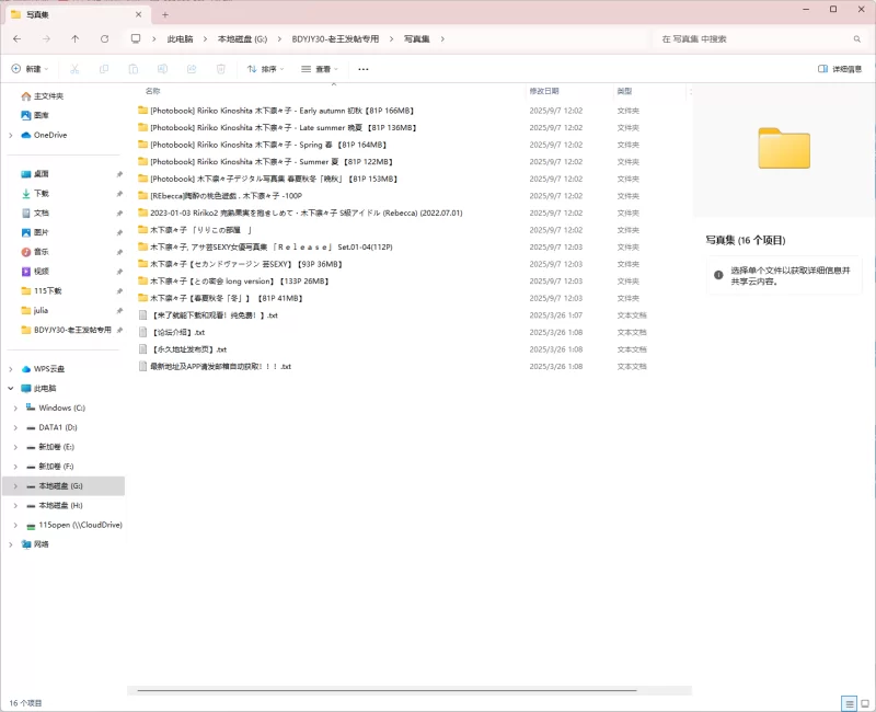 [自拍偷拍图片][自行打包] 木下凛凛子 木下凛々子 Ririko Kinoshita12本写真合集 [1120p+1.1g][百度盘]