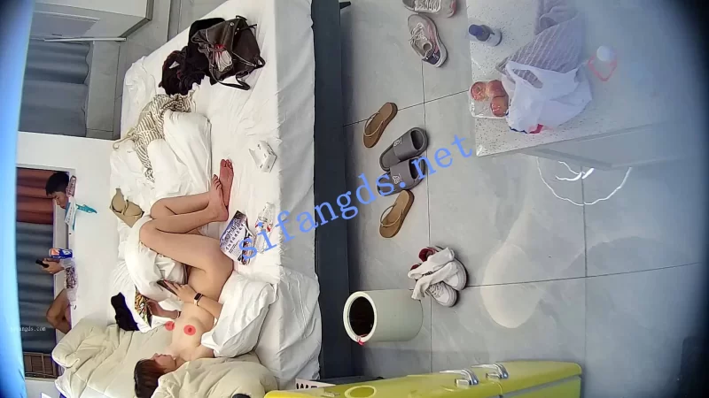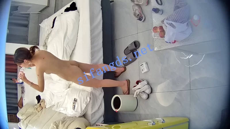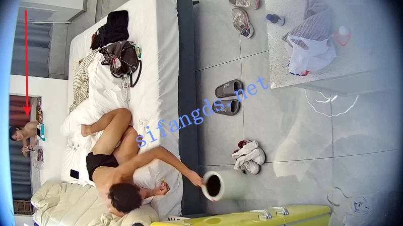 刚进入房间就开始铺浴缸的薄膜,看样是准备洗澡后大干一场,结果猴急的男友就把女友扑倒在床上疯狂吸奶。女友着急整理行李箱,就把男友推开了。穿好衣服床上躺着玩了会手机,女友报复性的掀起男友的衣服揉男友的奶子,被男友反扑。抱住就把裤子给脱了。
