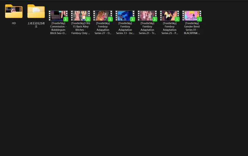 保存了TrestleSky大佬基本所有的伪娘作品,除了三四个极个别很短质量也不怎么样的没存。有9v是小部分质量一般的存的标清,剩下的都是高清资源放在了“HD”文件夹里,文件名里写了是舞蹈、舞蹈+爱爱还是单纯的做爱,多人团舞在HD文件夹里单开了一个。