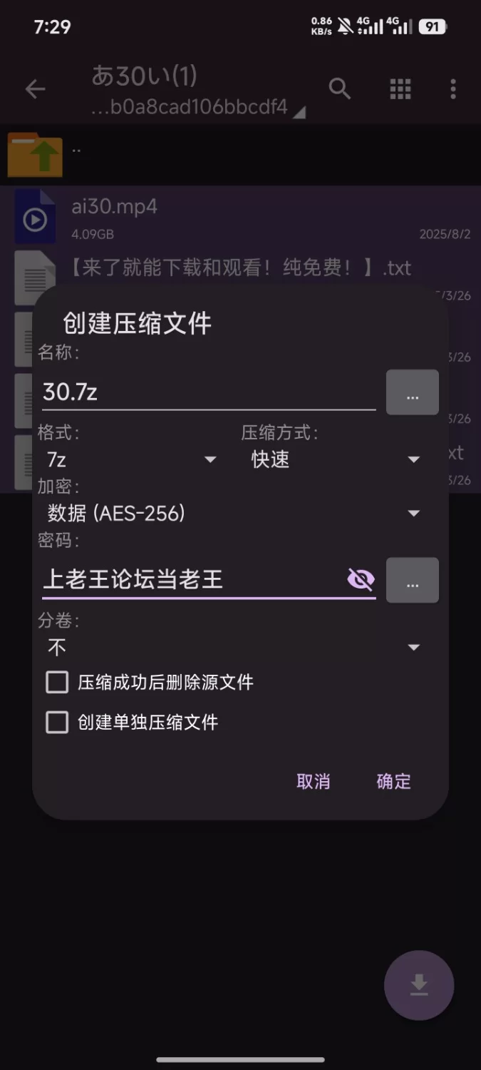 用ZArchiverPro100%可以解压成功!其他软件解压可能会报错!,没有密码。