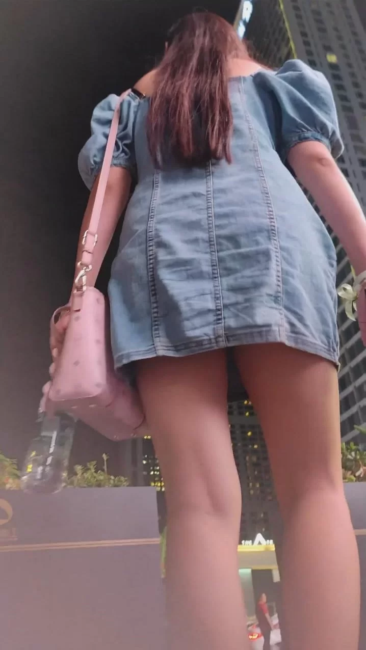 “大神广场一路尾随偷拍❤️蓝色牛仔连衣裙美女趁她买东西撅着屁股抄底白色内裤”