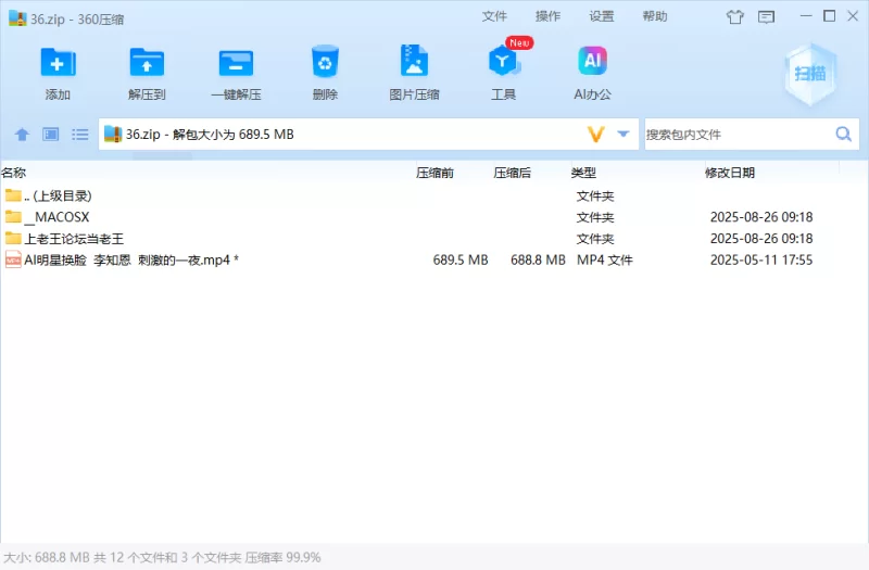 [国产自拍][自行打包] 「AI换脸」李知恩 刺激的一夜 [1V+689M][百度盘]