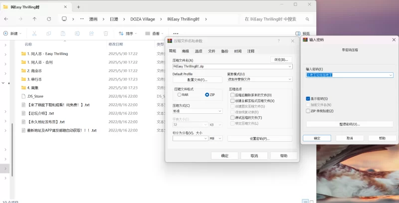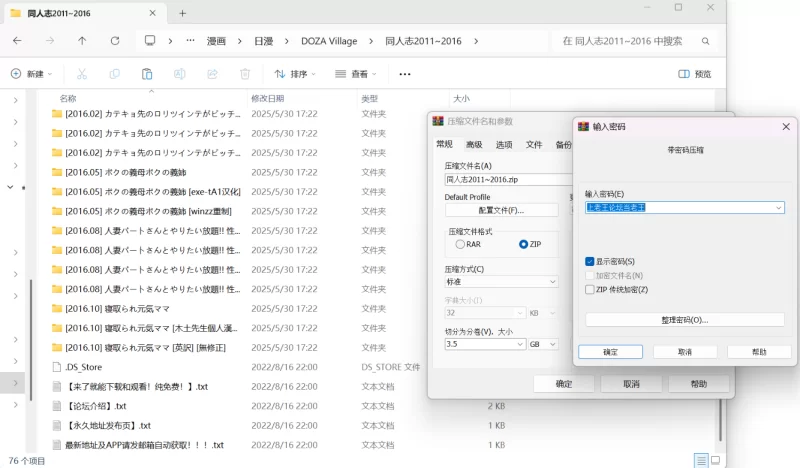 把同人志2011~2016.z01和同人志2011~2016.zip放到同一个文件夹内(z01和zip文件一定要在同一个文件夹内)