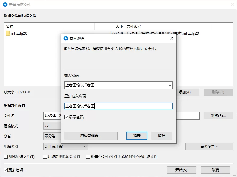 独立压缩成一个包。添加后缀.7z后,输入上老王论坛当老王解压。