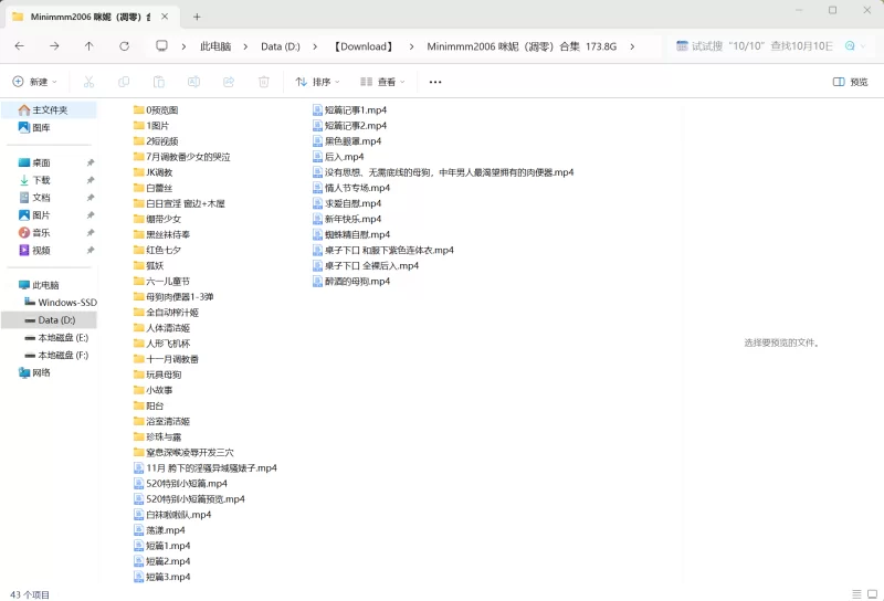 二、资源查重情况说明下载后我发现原合集是多个渠道、不同版本的内容混杂在一起的,因此花了四天的休息时间一个一个的人工手动查重。为了确保资源全面,反复比对视频内容,可以自信的说每个视频我都点开了至少10遍,删除了100+G的重复资源,最终获得这样一版精细查重的69.8G的合集。但是对于一些富哥私人订制的和基础合集未收录的新视频就没有啦。另外,从视频里看,个人主观认为24年以来男主都换三四个了,不太清有多少视频是未流通的。(ps:本合集质量就是这个样子,都是白嫖的总会和原版有差距,自助者,天助之,24年全世界处于饥饿状态的人都有6-7亿呢,想明白自己不是救世主,真有钱就去Onlyfans找minimmm888本人买一手资源。)为了这个资源花费了大量精力,并且合集较大,本人又是个纯牛马,失效大概率没空补,且行且珍惜。